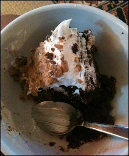 3rd Layer: Whip 2 small packages instant chocolate pudding with 3 cups cold milk. Smooth this over 2nd layer the top off with Cool Whip. Refrigerate until pudding is set. You can sprinkle with toasted sliced almonds or grated chocolate. You can also change this up and use a different flavor pudding such as banana or lemon. |